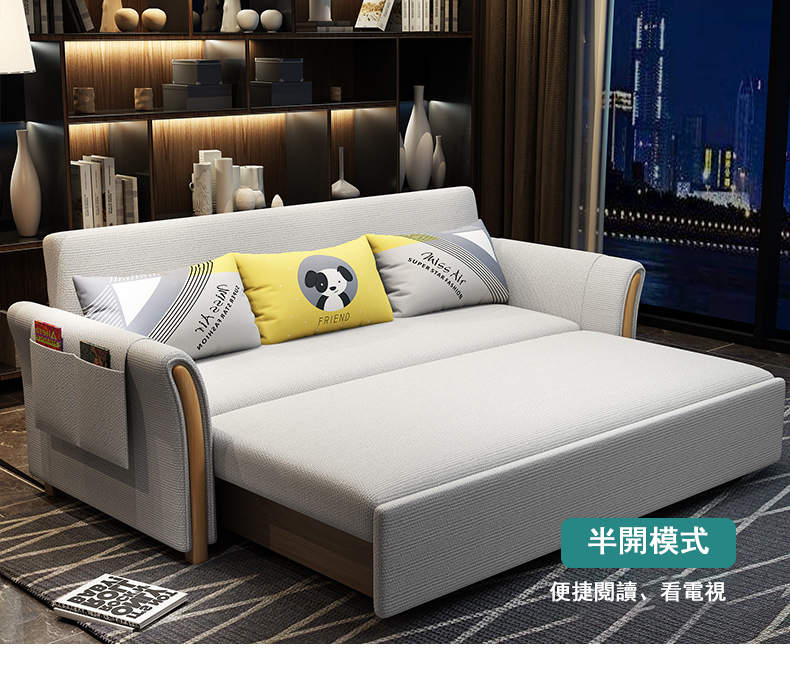 實木扶手可折疊客廳雙人兩用多功能梳化床